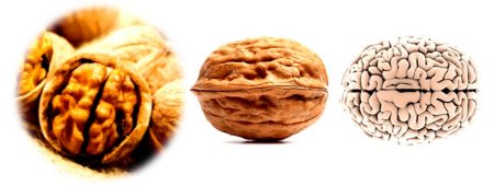 A walnut looks like a little brain, a left and right hemisphere, upper cerebrums and lower cerebellums. Even the wrinkles or folds on the nut are just like the neo-cortex. We now know walnuts help develop brain function:
