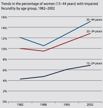 - Reported infertility and impaired fertility are up among both men and women, regardless of age.