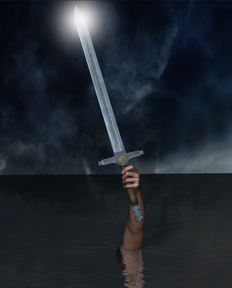 We’re familiar with the Lady of the Lake from the Arthurian myths, who raises the sword of Arthur, Excalibur, from the watery depths.